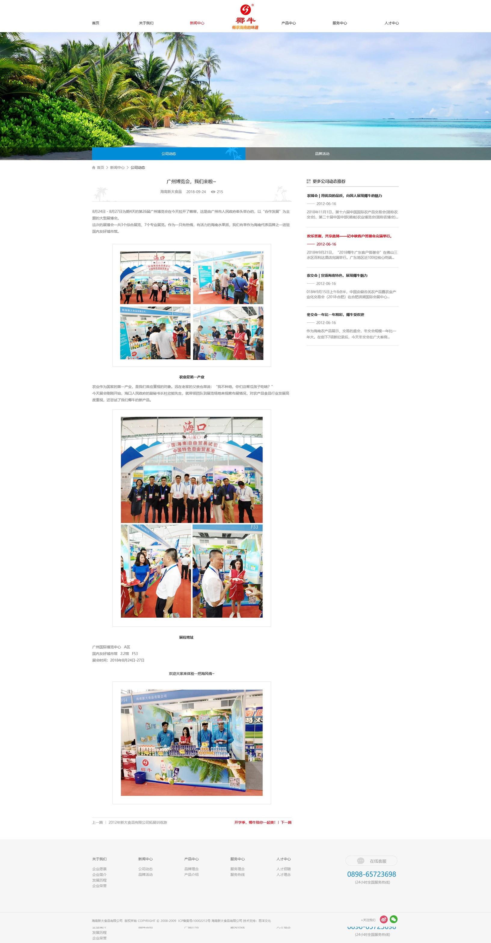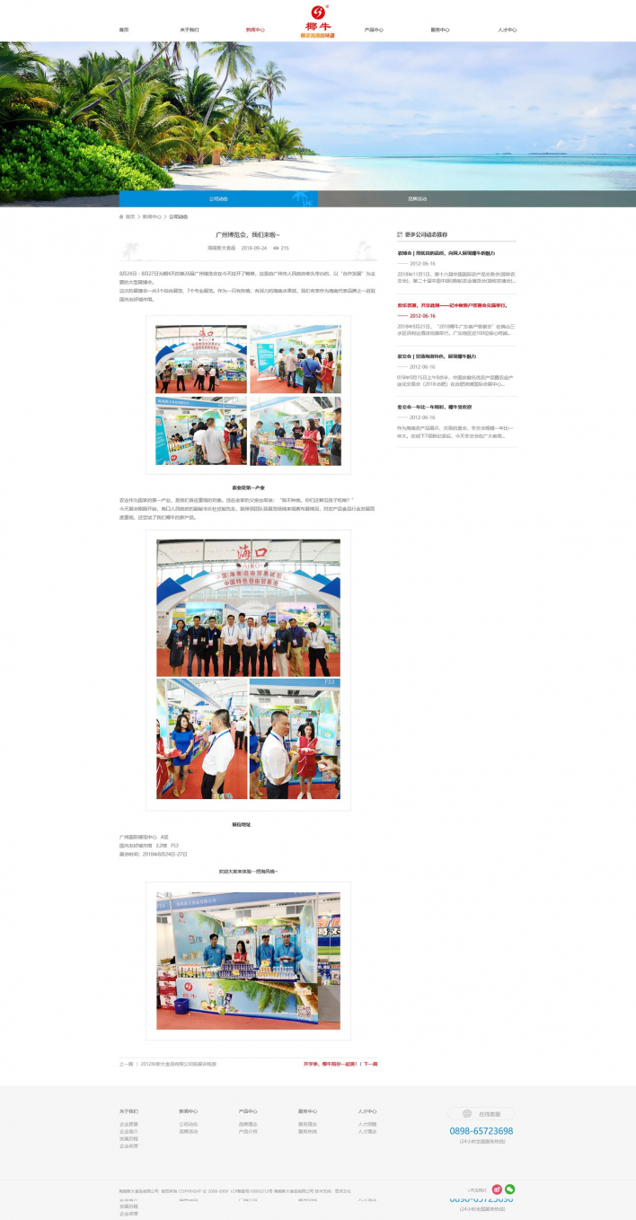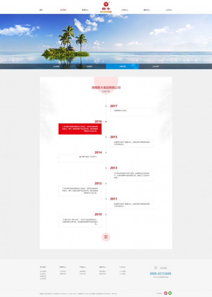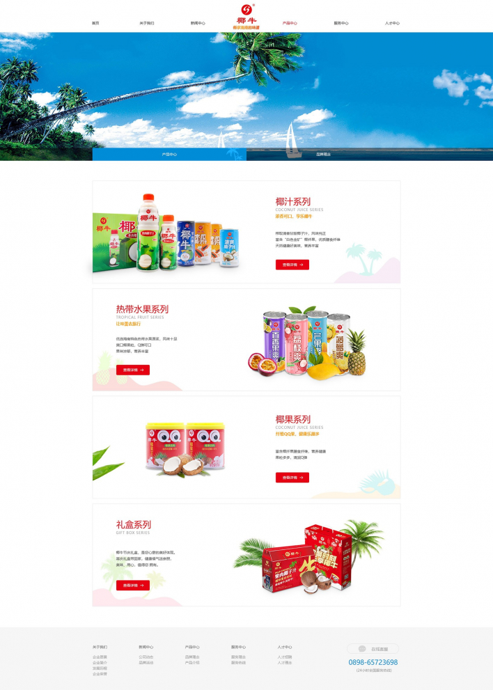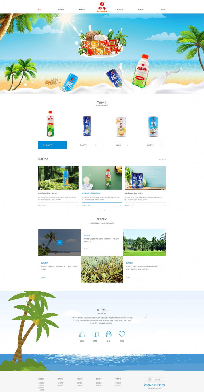 我司致力于打造健康、營養、美味的飲品,秉承“以質量求生存、以安全求保障、以誠信求發展、以管理求效益”的企業宗旨,先后成功開發了果肉椰子汁、果味椰子汁、熱帶水果飲料等三大系列產品。現已成功躋身中國椰子汁飲料行業十強。
